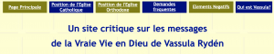 À propos de « la Vraie Vie en Dieu », un site de référence : PSEUDOMYSTICA.INFO Qui est Vassula Rydén y qu’est-ce que la VVD? Position de l’Eglise sur les messages de la VVD: Eglise Catholique & autorités orthodoxes Témoignages: quelques mauvaises expériences avec la VVD Erreurs doctrinales et éléments négatifs Demandes Fréquentes – FAQ Théologiens & … Lire la suite de Vassula Rydén, la Vraie Vie en Dieu